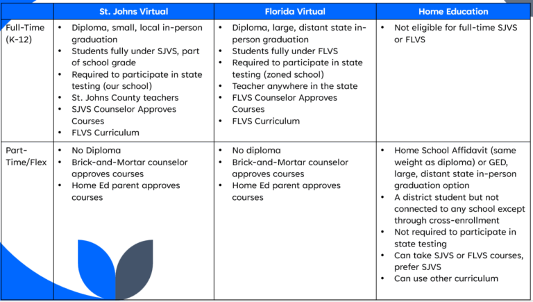 If you are wanting to completely leave brick-and-mortar and be fully remote, and missed the full-time SJVS window, register for Home Education (SJVS or FLVS Flex/Part Time).
